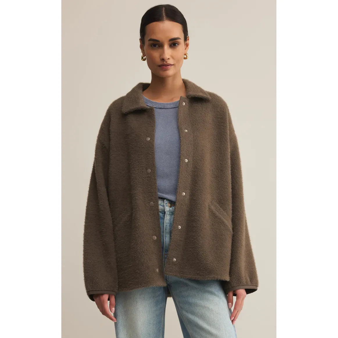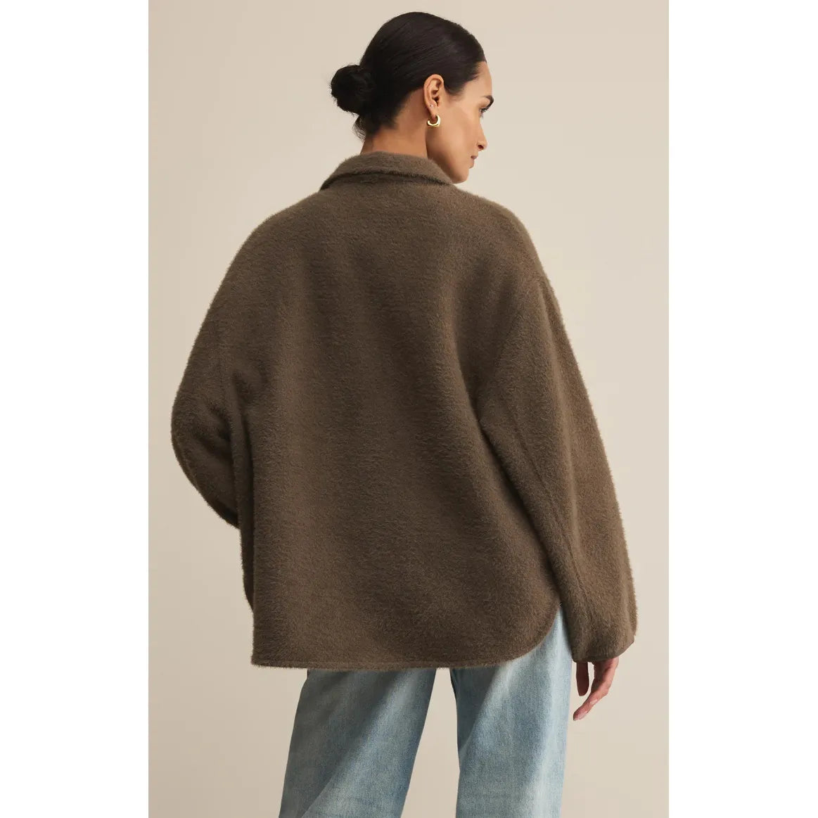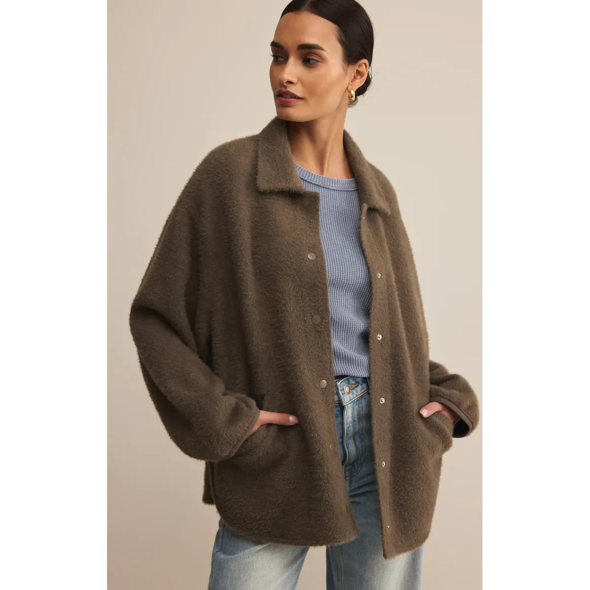When you want cozy and cool, this oversized sweater-knit jacket has your back. Designed with dropped shoulders, welt pockets, and that plush, snuggle-worthy texture.