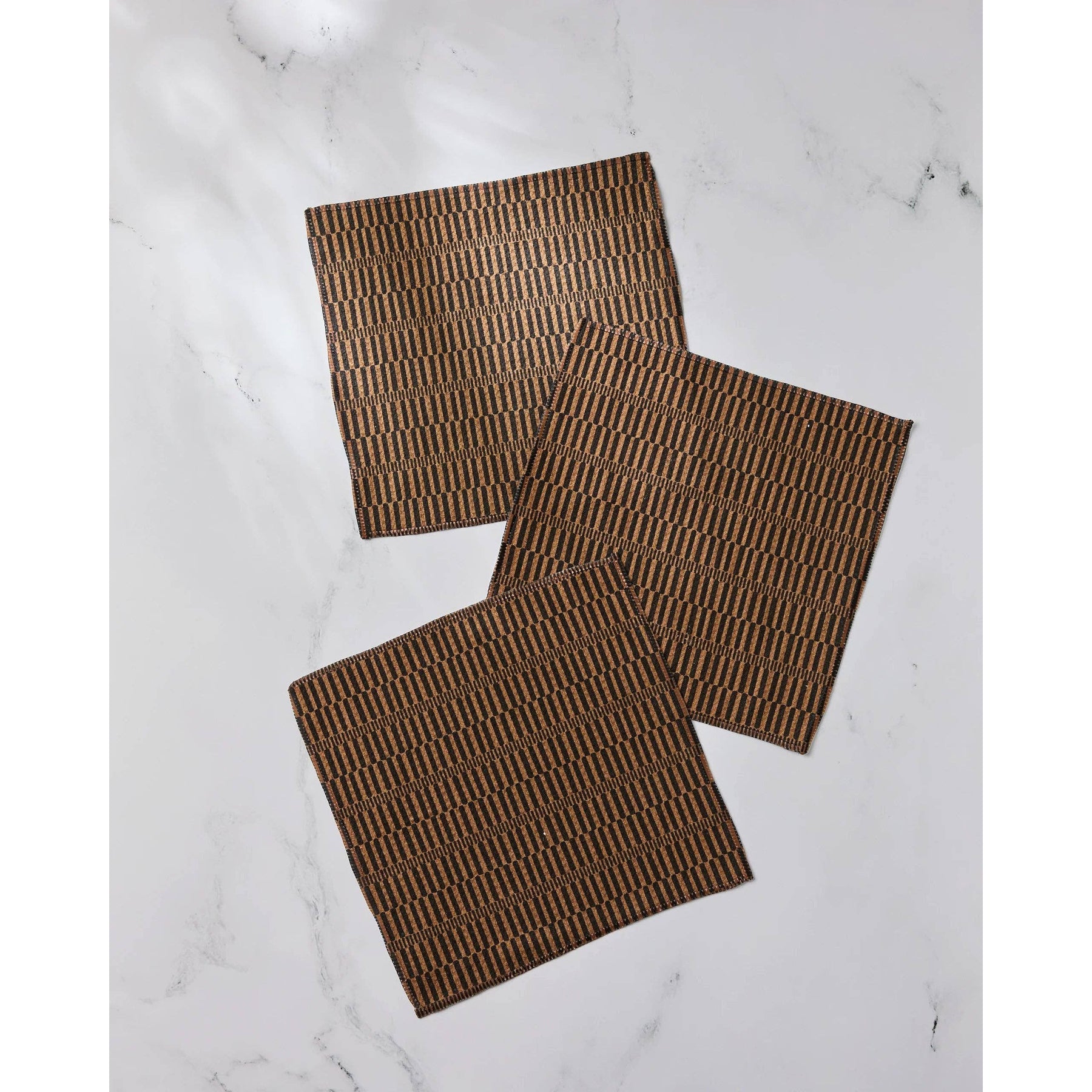 Dishcloth Set - 3 Pack Dish it out. These can take it! Our Dishcloths are everything you love about the original Geometry Kitchen Towel – in mini-size! Scrub, wipe, shine and repeat – our fast-drying, super-absorbent dishtowels can handle your biggest messes with ease (and a whole lot of style). Created from our signature Geoweave(™) fabric, perfect for surface cleaning and shining. SKU: DC-MF-ridge GTIN/UPC: 00840392755948 ... * ♺ Made from post-consumer recycled materials * 10" x 10" * Single-sided print ... Chore responsibly. From scrubbing pots and pans to wiping up spills to accenting your kitchen with the season’s most captivating prints, our Dishcloth Sets will be your constant companion – and they’re a friend to the environment too. Our towels are created from post-consumer recycled products and manufactured using less water than traditional methods, minimizing our carbon footprint. And due to its patented weave, high absorbency and quick dry time, you can clean with fewer harsh chemicals.