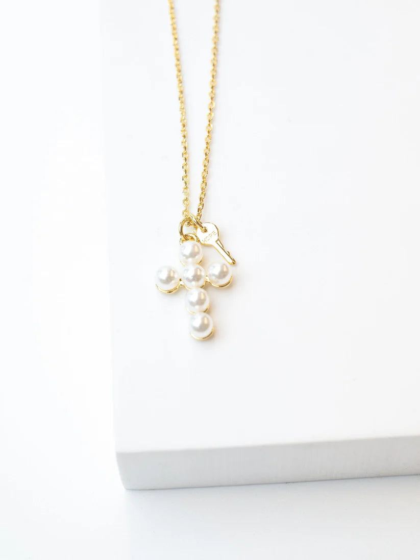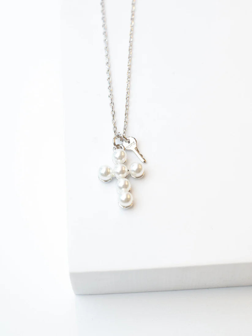 Pearl Cross and Mini Key Necklace