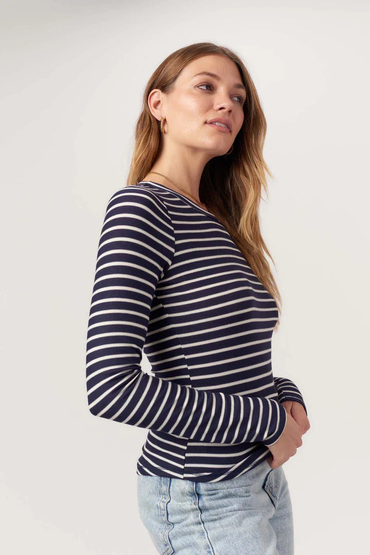 Over and Out Striped Crew Long Sleeve - Navy Stripe