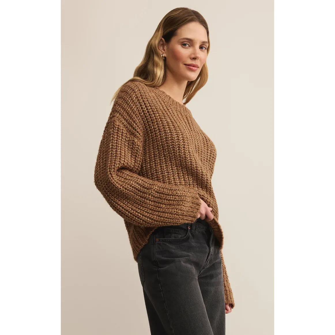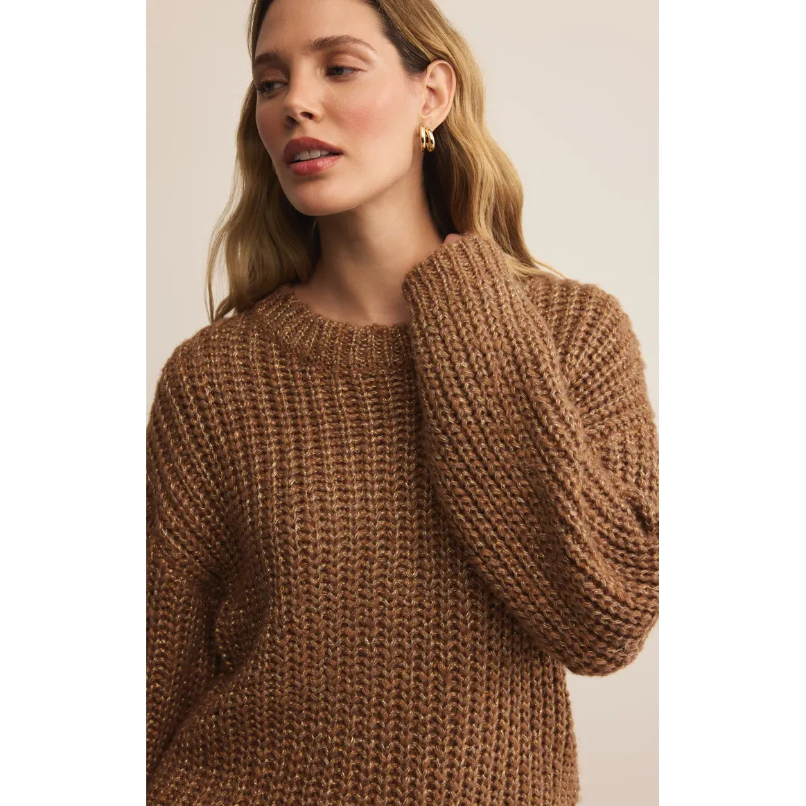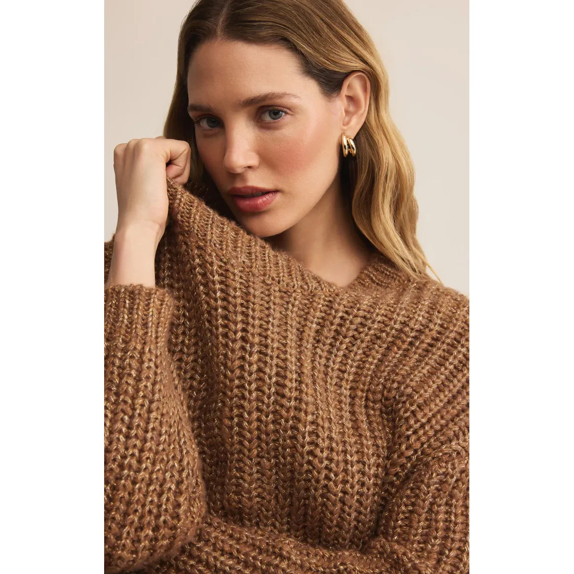 Soft metallic flecks add just the right shimmer, making this sweater shine from day to night.