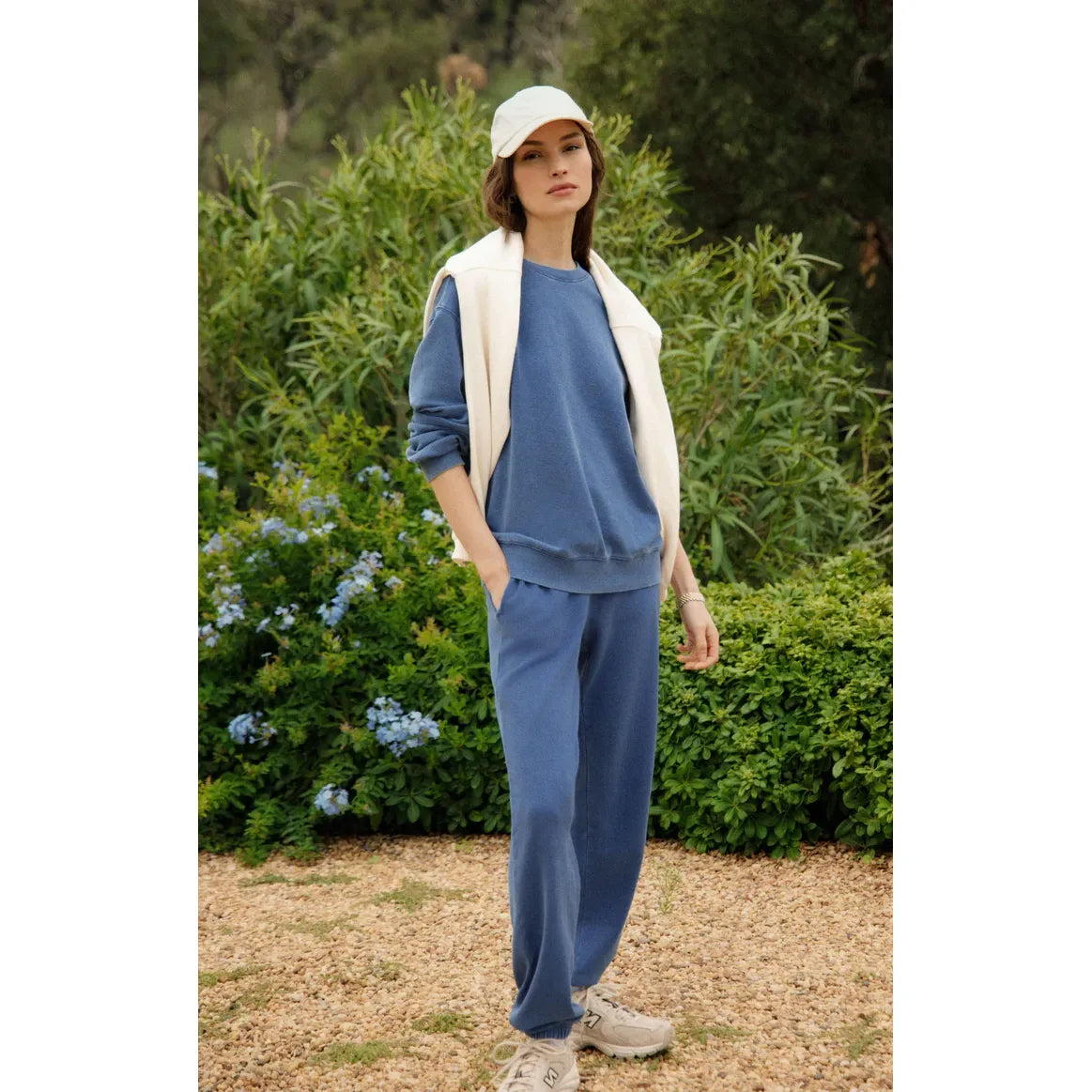 This jogger blends the look of denim with the softness of French terry for all-day wearability. The drawstring waist, side pockets, and tapered leg create a flattering, easygoing silhouette that goes wherever you do.