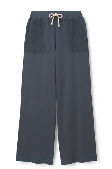 find a more relaxed sweatpant than this. you can’t. this wide leg french terry pant features a full length leg, natural draw cord and reverse side patch pockets. pair back to the maren half zip or the tyler french terry crewneck.