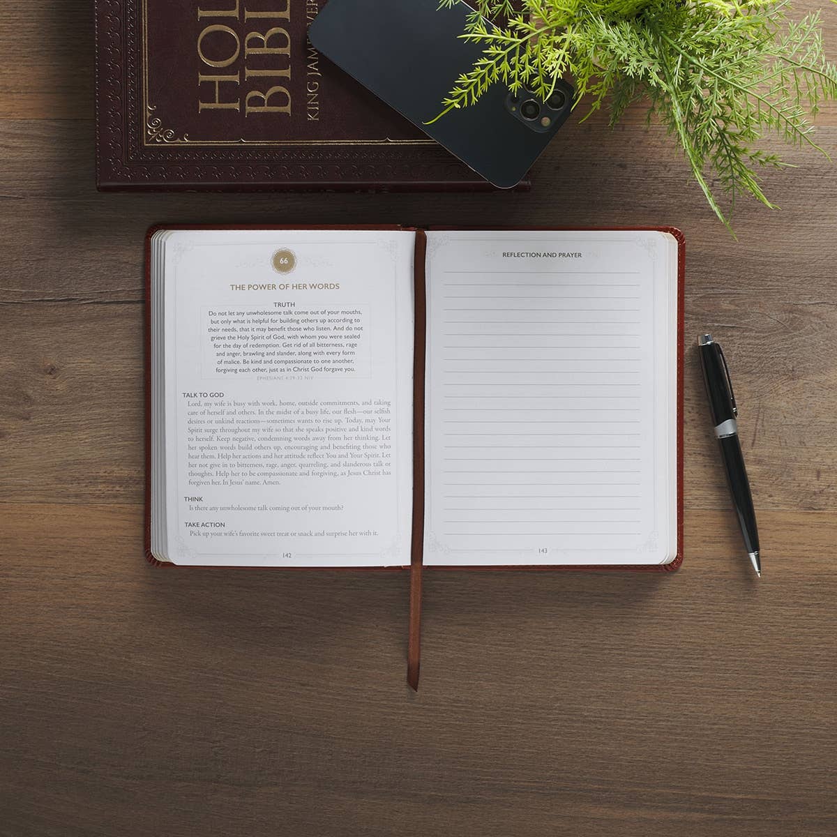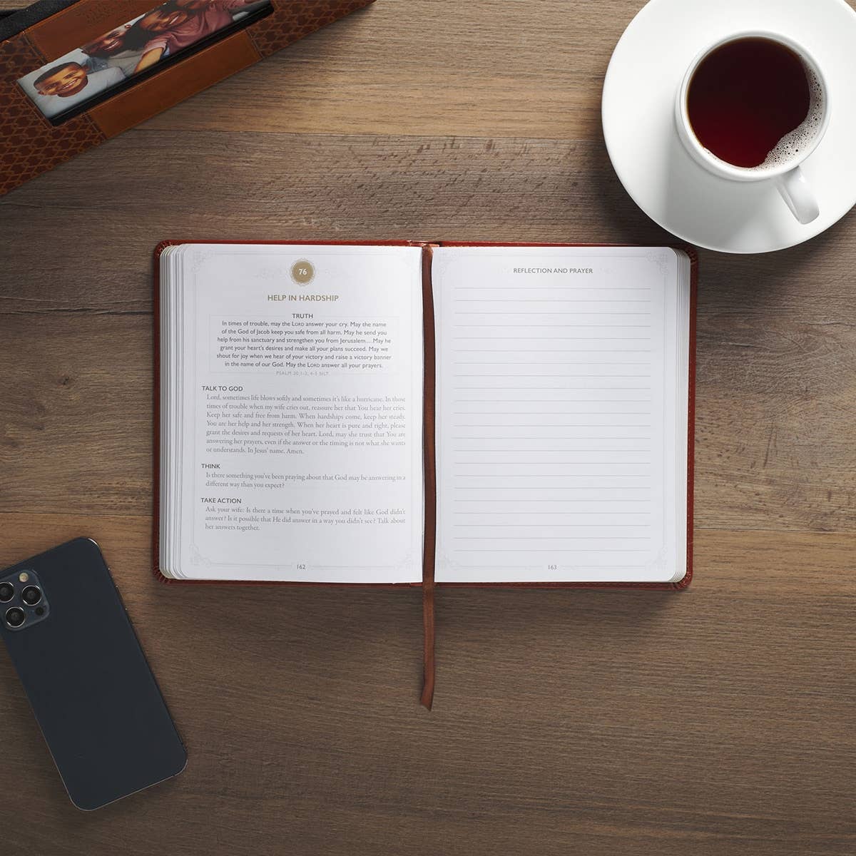 A praying man is a powerful force for good in the lives of those around him. In the 199 Prayers for My Wife Saddle Tan Faux Leather Prayer and Journaling Guide, you will learn how your partner can cover your wife with a shield of love and protection and demonstrate your commitment and devotion to your wife.