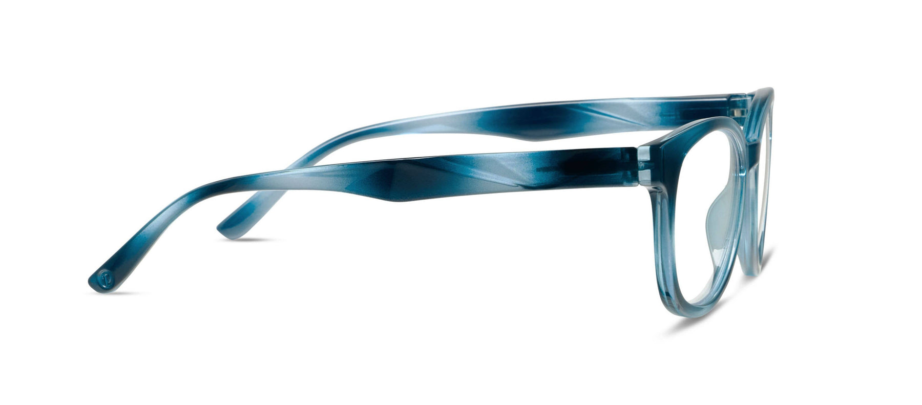 At first glance, Virginia’s eye-catching colors capture attention. Look closer, and you just might get lost in the dimensional swirls of teal or clear. Unique faceted temples add an angular edge to the soft square frame shape. When it all comes together, Virginia becomes a style unlike any other.